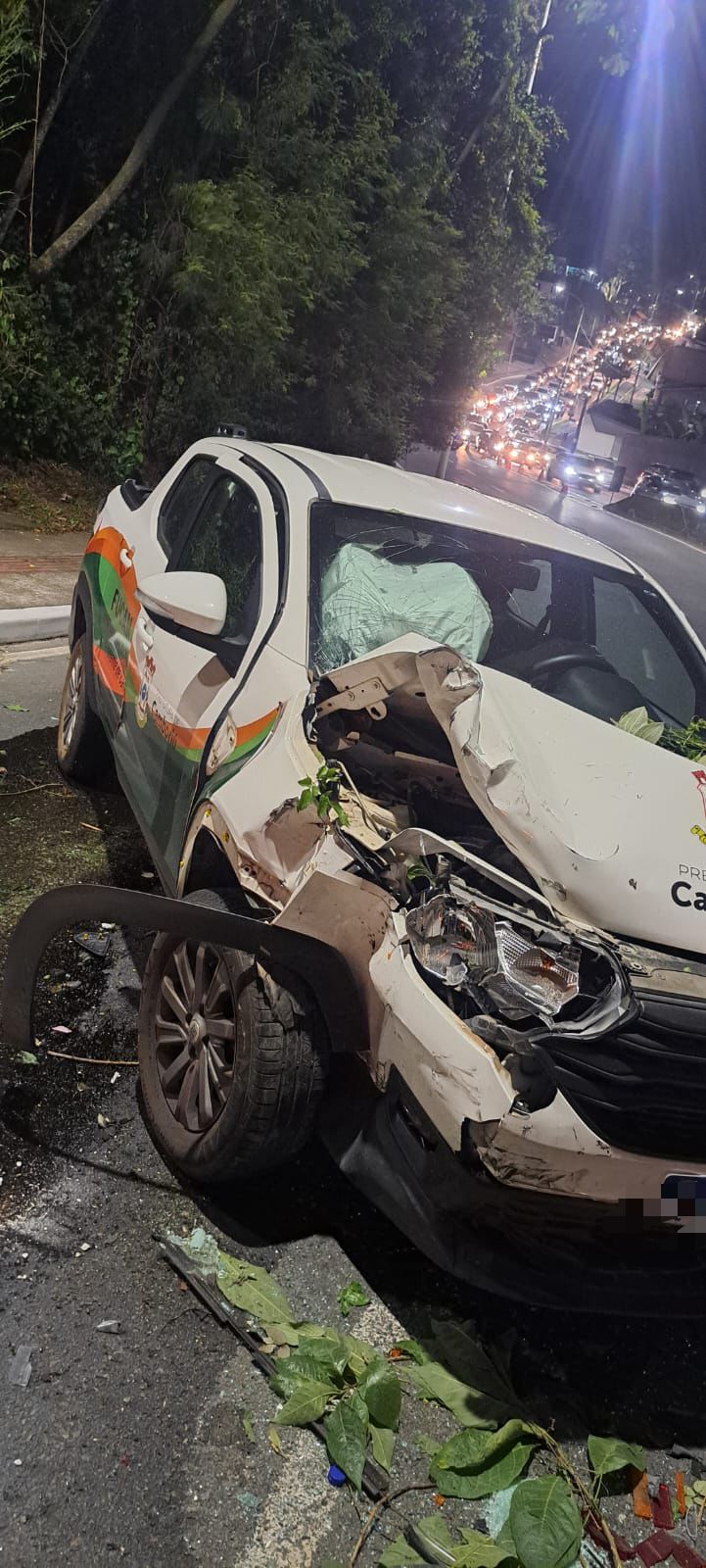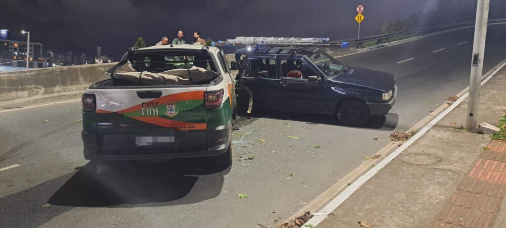 De acordo com informações, um Fiat Uno apresentou dificuldades para vencer a inclinação da via e acabou retornando de forma involuntária. O condutor tentou conter o veículo apoiando uma das rodas no meio-fio e engatando a marcha, mas, ao desembarcar, o carro desceu desgovernado e colidiu contra um veículo oficial de Camboriú, sendo um Fiat Strada, que seguia logo atrás.