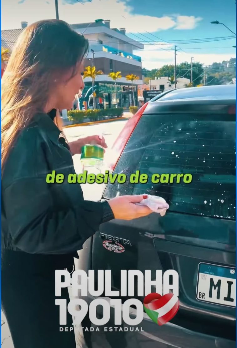 Com coração e coragem, o jeitinho Paulinha de ser está presente até no tutorial de como colocar um adesivo perfurado no carro. Pois é, a deputada e candidata à reeleição não se intimidou e ela mesmo pegou borrifador com água e sabão, esponja e paninho para explicar como adesivar o seu carro com o material de sua campanha, com os números # 19010 e #10, em apoio ao governador Carlos Moisés.