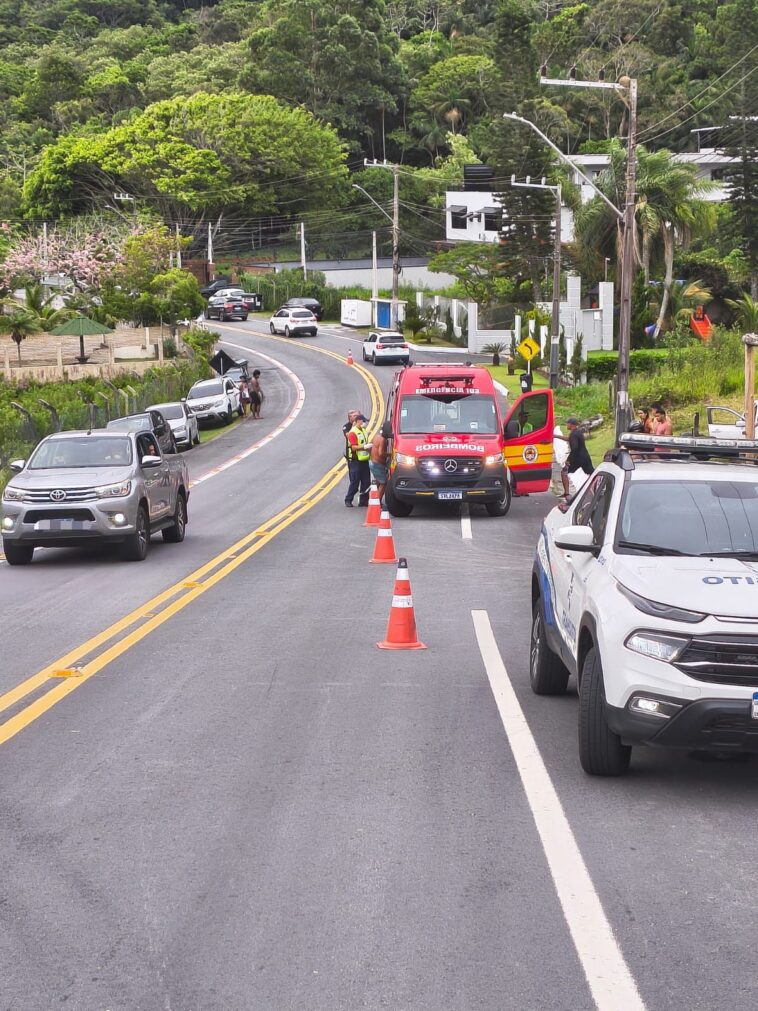 Na tarde de sexta-feira (26), por volta das 16h50, os Agentes de Trânsito prestaram apoio ao Corpo de Bombeiros em um sinistro de trânsito com vítima, ocorrido na Avenida Rodesindo Pavan, na descida do Morro da Praia do Pinho, no sentido Itapema.