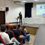 Durante a averiguação, a guarnição identificou dois equipamentos autopropelidos da empresa Jet, de cor azul, estacionados em desacordo com a Lei Municipal nº 4.983/25, ocupando o passeio público e prejudicando a circulação de pedestres.