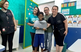 O aluno Pytro Naiã Matias Alves, 8 anos, do 3º ano do Ensino Fundamental do Centro Educacional Municipal CAIC Ayrton Senna da Silva tirou o primeiro lugar, na categoria Educação Especial, do Concurso de Desenhos da Concessionária Arteris Litoral Sul. O concurso ocorreu em dezembro de 2021, com o tema Natal, mas a premiação foi esta semana, quando a Concessionária entregou ao vencedor um notebook.
