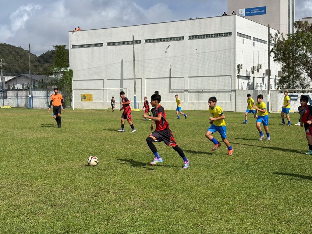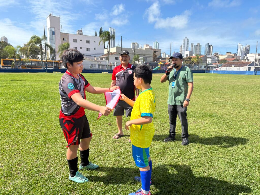 Com os estudantes de Balneário Camboriú vestidos com o uniforme do Brasil, os jogos amistosos iniciaram após os dois hinos nacionais e foram marcados pela diversão e integração entre os times.