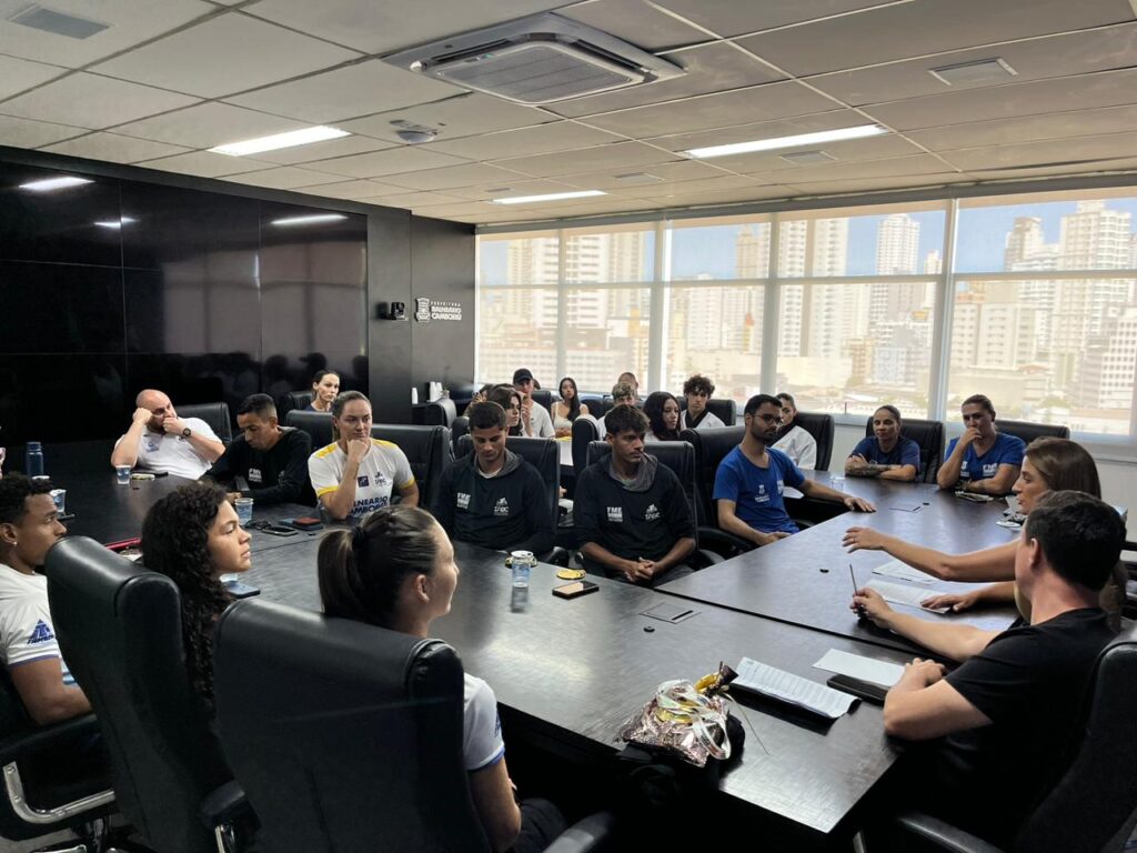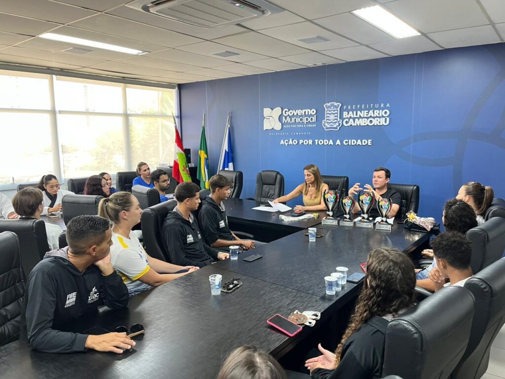 Atletas e treinadores da Fundação Municipal de Esportes (FME) de Balneário Camboriú estiveram reunidos com a prefeita Juliana Pavan e com o diretor-presidente da FME, Diogo Catafesta, para falar sobre as importantes conquistas adquiridas em 2025. O encontro foi realizado no início da tarde desta segunda-feira (15), na sala de reuniões do gabinete.