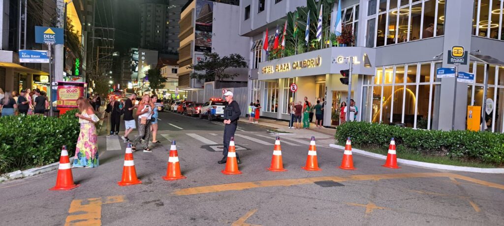 Foi necessária a interdição total da via para atendimento da ocorrência e segurança das equipes, sendo o trânsito inicialmente desviado pela Rua 51, no sentido da Avenida Atlântica, e posteriormente pela Avenida Brasil com a av. Alvin Bauer, permitindo a fluidez em direção ao sul da cidade.