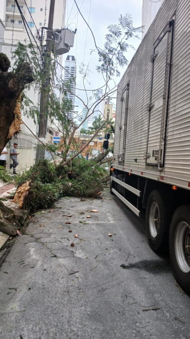Caminhão derruba parte de árvore e danifica iluminação pública na Rua 916