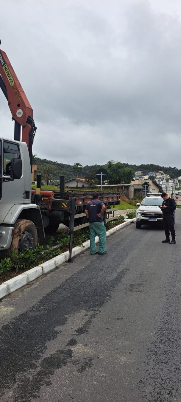 Caminhão é autuado por estacionar sobre passeio e danificar calçada na Avenida Martin Luther
