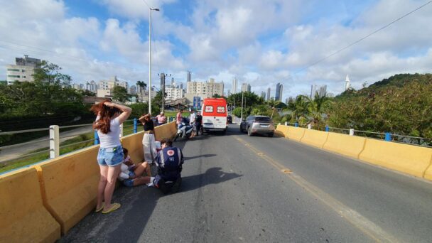 Colisão entre duas motocicletas deixa duas pessoas feridas na ponte Altamiro Domingos Castilho