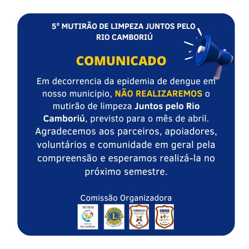 Suspenso o mutirão de Limpeza Juntos pelo Rio Camboriú
