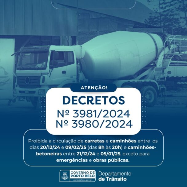 Porto Belo define horários para circulação de carretas e caminhões betoneiras no período de festas 2024/2025