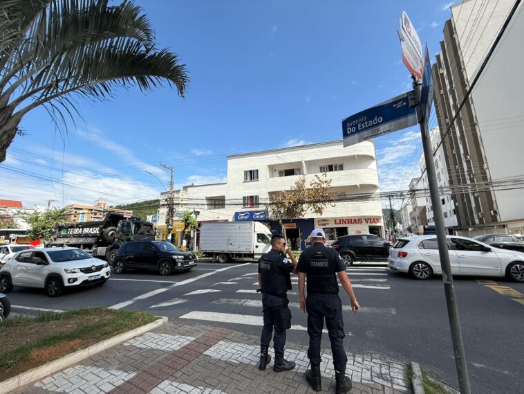 Agentes de Trânsito estão no local para auxiliar os motoristas.