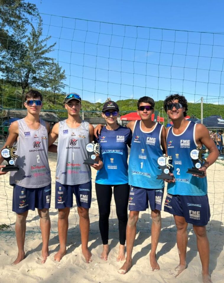 O vôlei de praia de Balneário Camboriú iniciou a temporada com o pé direito. No último final de semana, a delegação da Fundação Municipal de Esportes (FME) brilhou na primeira etapa do Circuito Catarinense Sub-17, realizada em Imbituba durante o sábado (28) e domingo (1°). Com uma performance consistente, a equipe masculina protagonizou uma “final caseira”, garantindo as duas posições mais altas do pódio e reafirmando a força das categorias de base do município.