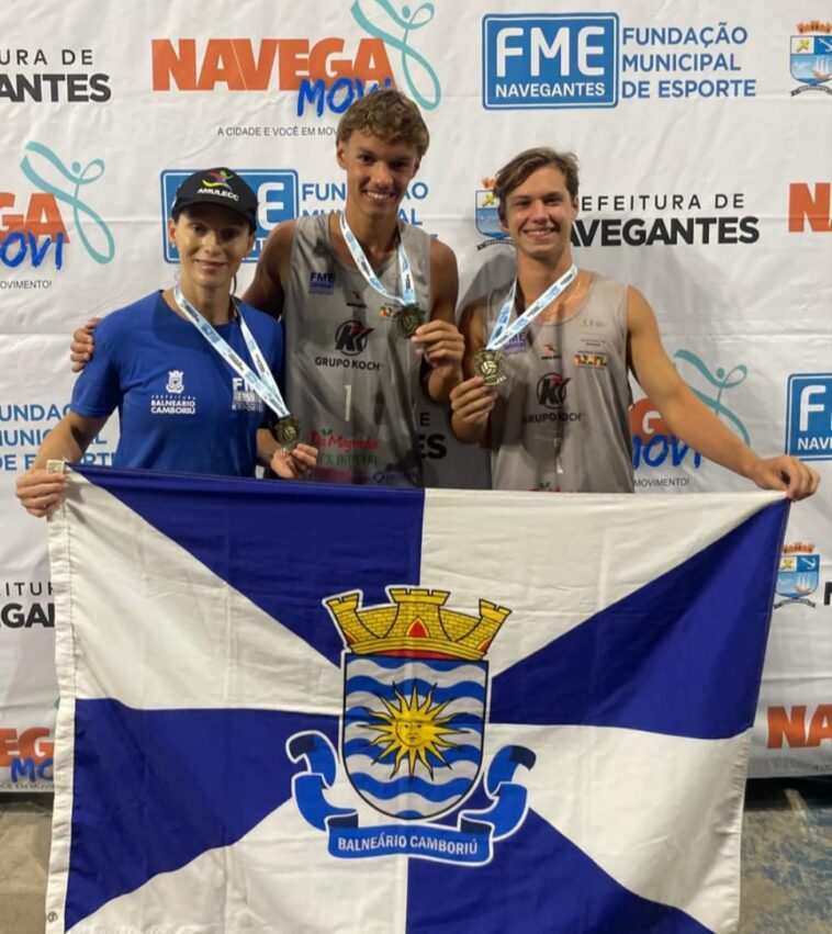 Os atletas Arthur Póvoas e Thomas Endler, bolsistas da Fundação Municipal de Esportes (FME) de Balneário Camboriú, conquistaram medalha de ouro na segunda etapa do Circuito Catarinense Sub-19 de Vôlei de Praia 2025. A competição, organizada pela Federação Catarinense de Voleibol, reuniu atletas, comissões técnicas e público nos dias 3 e 4 de maio em Navegantes.