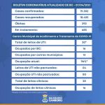 Os demais grupos continuarão sendo imunizados conforme distribuição dos lotes pelo Governo do Estado, seguindo a ordem de priorização. A Prefeitura Municipal irá informar a população dos locais de vacinação e fases, conforme a chegada de mais doses ao município.