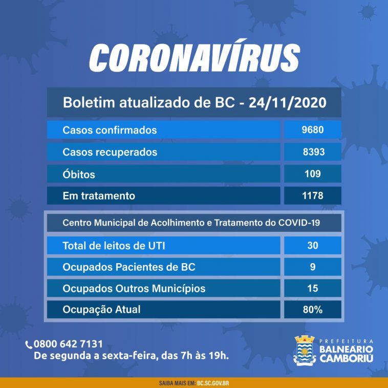 UTI COVID: 24 pacientes (nove de Balneário, nove de Camboriú, quatro de Itapema, um de Porto Belo e um de Bombinhas)