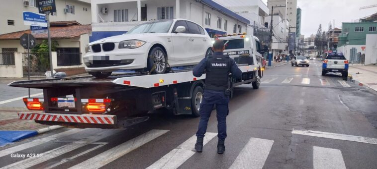 Um veículo de luxo foi abordado pelos Agentes de Trânsito de Balneário Camboriú, na tarde de sexta-feira (23) por estar com o licenciamento vencido e em mau estado de conservação.