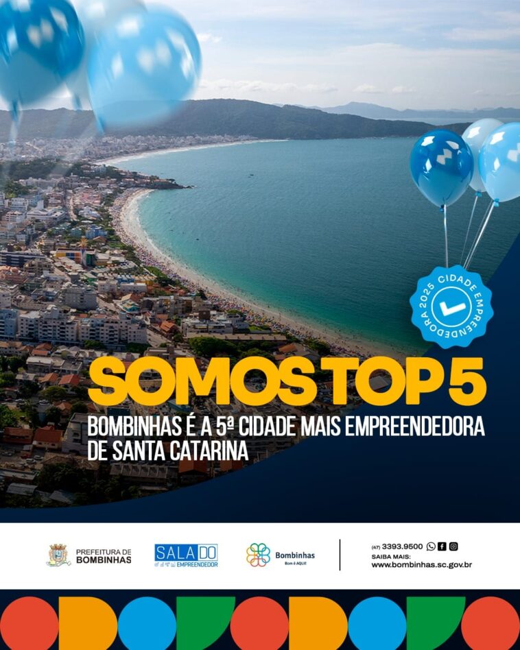 Bombinhas se destaca entre as cidades mais empreendedoras de Santa Catarina, ocupando a 5ª posição no ranking do Sebrae/SC. O levantamento, que considera o número de empresas por habitante, destaca o município à frente de cidades como Itajaí e Blumenau, reconhecidas pelo seu potencial empresarial.