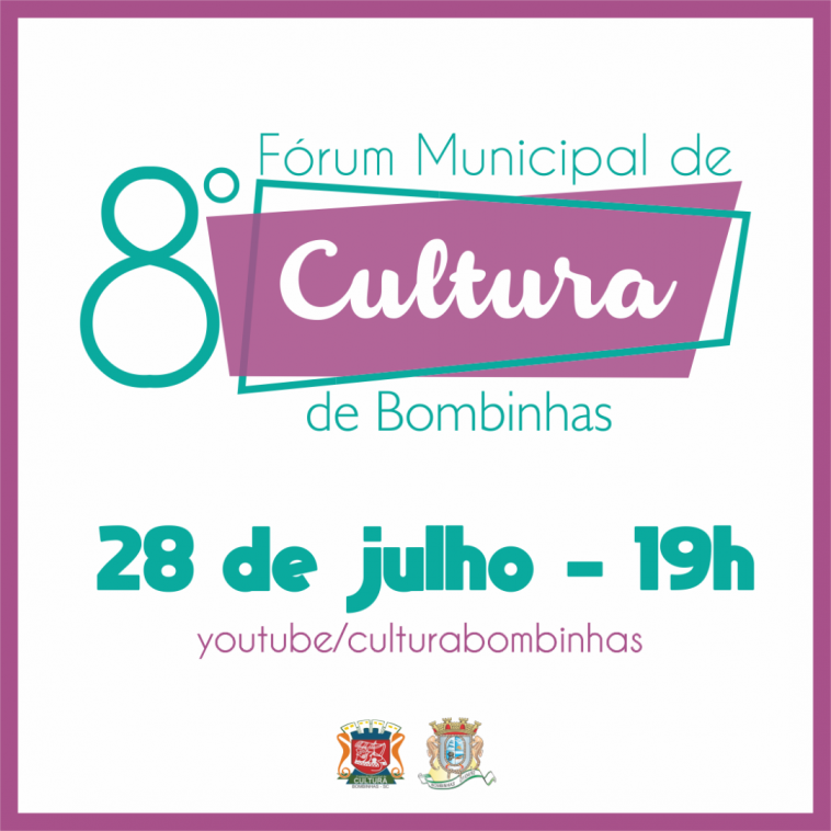 O 8º Fórum Municipal de Cultura de Bombinhas acontece no dia 28 de julho, das 19h00 às 21h30 através da plataforma Zoom, transmitido ao vivo nas páginas do Facebook e YouTube da Fundação de Cultura (@culturabombinhas). E na sexta-feira, 23 de julho, a Comissão Organizadora do Fórum homologou as inscrições das candidaturas para a representação da sociedade civil para o biênio 2021/23 no Conselho Municipal de Políticas Culturais de Bombinhas – ComCultura. Concorrem as cadeiras no Artesanato: Daniel Masahiti Perez Tamashiro e Simone de Melo; Artes Cênicas: Caroline Calcaterra Souza Santos; Artes Visuais: Jadir Nadiel Coelho; Audiovisual e Cultura Digital: Marina Martins Simioli; Cultura Negra: Júnia Katarina Bicca; Cultura Popular e Tradicional: Adauto Saturnino Januário e Alessandra Gruszkowska de Lacerda; Literatura: Bethrosa Leal Poderoso; Música: não houve inscritos; e Patrimônio: Rita de Cássia Fraga da Costa.