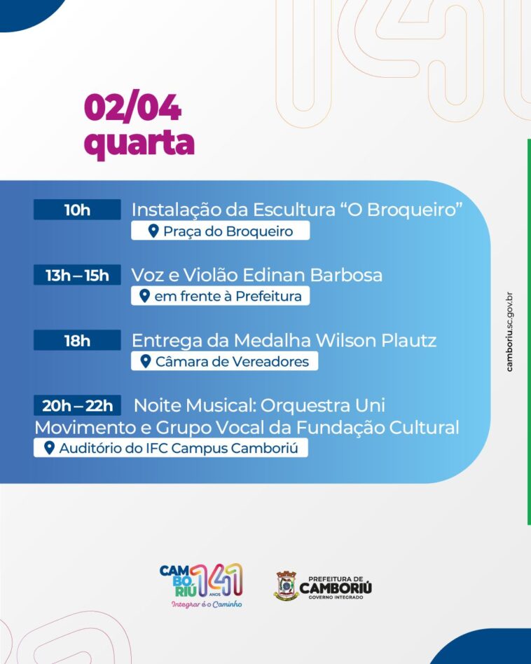 Nesta terça-feira, dia 01, iniciou o quarto dia de comemorações para o aniversário de 141 anos de Camboriú, confira como foi até agora