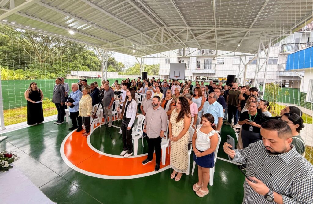 O novo equipamento público possui 870 m² de área construída, com sete salas de aula, ambientes pedagógicos e quadra de esportes coberta, integrando a estrutura voltada ao desenvolvimento e cuidado das crianças.
