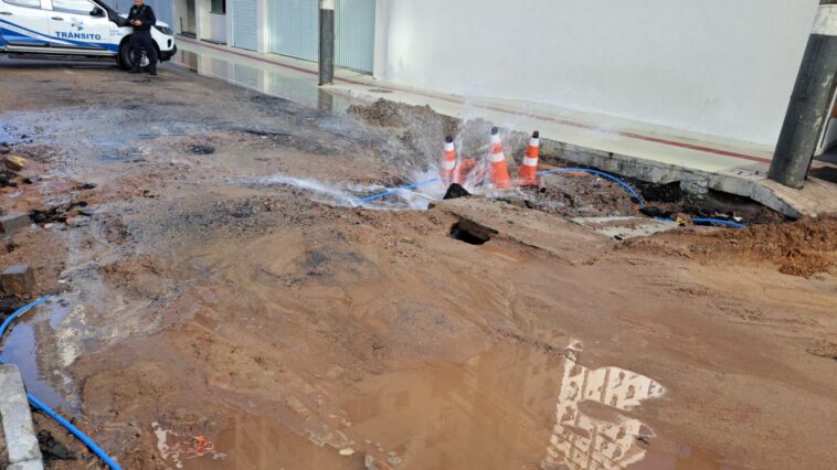 Com o impacto, a tubulação foi danificada, exigindo a atuação da Empresa Municipal de Água e Saneamento (EMASA), responsável pelo reparo emergencial.