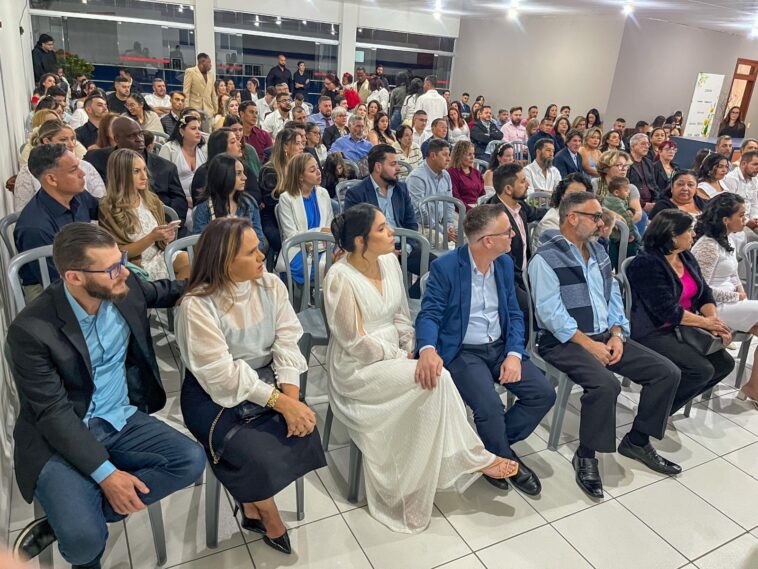 “Eu era muito pequena quando assistia aos casamentos coletivos e lembro de olhar tudo aquilo com encantamento e pensar: ‘Meu Deus, imagina quando tiver 50, 60 casais!’ Hoje, diante de 61 casais, posso dizer que estou imensamente feliz de estar aqui, como prefeita e também como madrinha do casamento de vocês. O casamento celebra a união, mas também simboliza algo ainda maior: a construção de uma família, o fortalecimento de um amor que transcende o tempo. No domingo faremos uma grande festa à altura desse amor. Uma data que será eternizada em fotos, vídeos, mas, acima de tudo, no coração e na memória de cada um. Que este dia fique marcado como o melhor casamento coletivo da história de Balneário Camboriú”, ressaltou a prefeita Juliana Pavan.