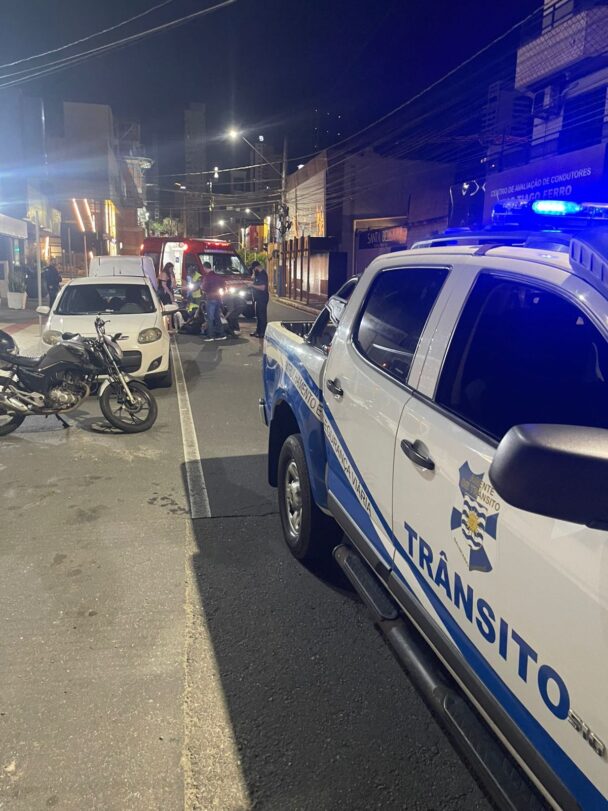 Motociclista fica ferido após colidir contra veículo estacionado na Avenida Alvin Bauer