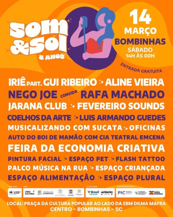 Som&Sol celebra aniversário de Bombinhas com extensa programação cultural neste sábado