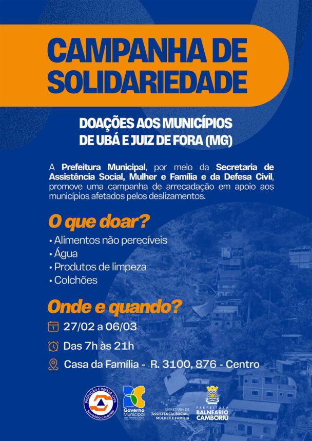 Balneário Camboriú recebe até sexta-feira donativos para serem enviados a Minas Gerais