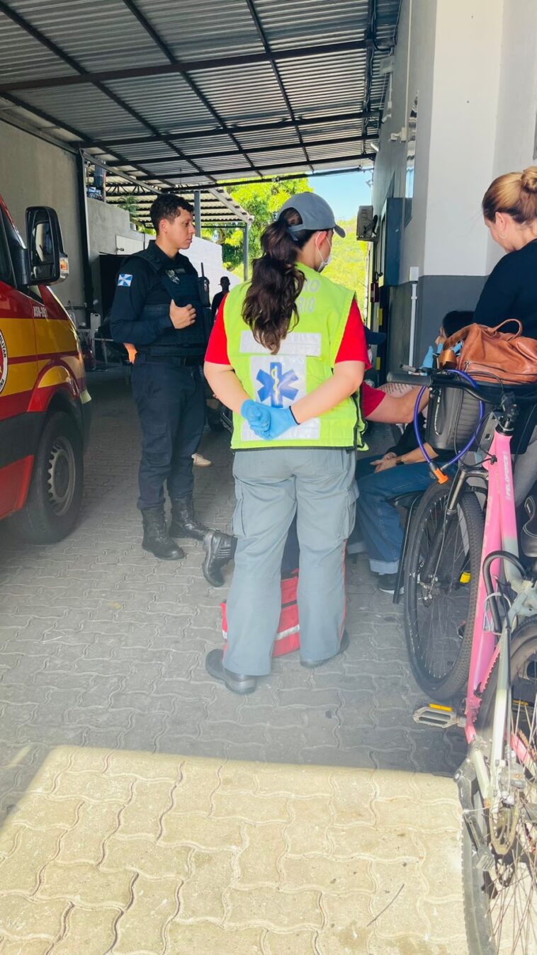 Durante rondas, os Agentes de Trânsito visualizaram o sinistro e realizaram o pronto atendimento. A ciclista, uma mulher de 57 anos, que conduzia uma bicicleta modelo Kanne Velofirce, sofreu impacto na cabeça e foi atendida pela equipe do Corpo de Bombeiros, sendo encaminhada ao Hospital Ruth Cardoso para avaliação médica.