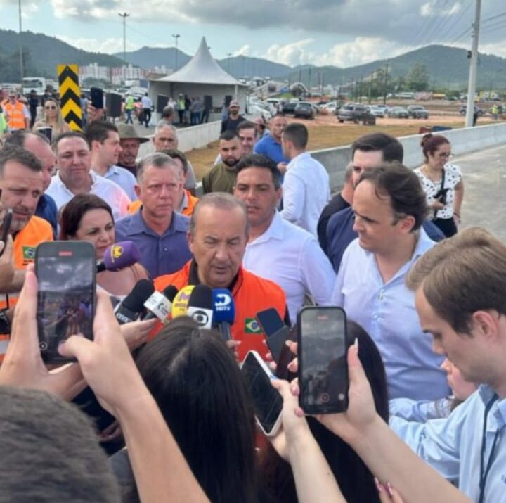Uma importante obra para a região da AMFRI foi inaugurada nesta sexta-feira, 28, às 9h. Com a presença do governador Jorginho Mello, cerimônia marcou a implementação de duas alças de acesso da SC-486 à BR-101, em Itajaí. Ele esteve acompanhado do secretário da Infraestrutura e Mobilidade, Jerry Comper, além de autoridades e lideranças da região. Também estiveram presentes autoridades da AMFRI, como o presidente Tiago Baltt, a secretária executiva Luciana da Silva, e prefeitos da região da AMFRI.