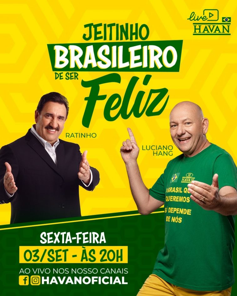 Se tem uma coisa que o povo brasileiro entende é de buscar soluções criativas para os desafios do dia a dia. Não é por menos que somos a 4ª nação mais criativa do mundo, segundo estudo do WARC Rankings. Essa característica tão peculiar do nosso povo fez nascer a expressão “jeitinho brasileiro” e este é o tema da campanha Setembro do Brasil da Havan. Nesta sexta-feira, 03/09, uma live com Luciano Hang e o apresentador, Ratinho, vai abordar o assunto de maneira leve e descontraída, nas redes sociais da Havan (Instagram e Facebook), às 20 horas,