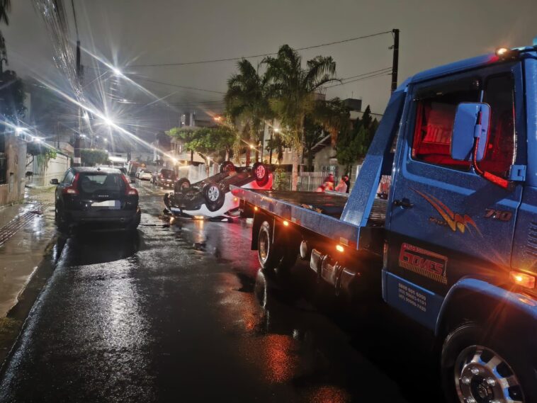 Na madrugada de terça-feira (30), por volta da 1h, os Agentes de Trânsito prestaram apoio em um sinistro de trânsito envolvendo capotamento de veículo na Rua 980, entre a Marginal e a 4ª Avenida, na região central da cidade.