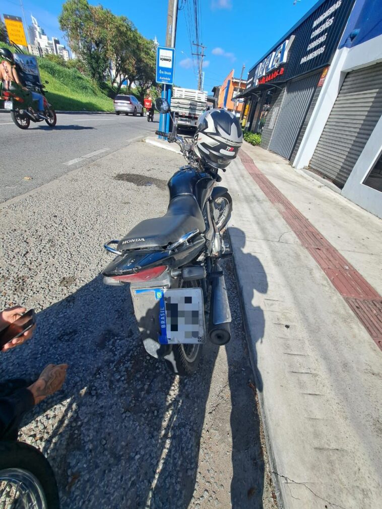 O veículo, uma Honda/CG 125 Fan ES, de cor preta, foi autuado conforme as irregularidades constatadas, sendo removido ao pátio para os procedimentos administrativos cabíveis.