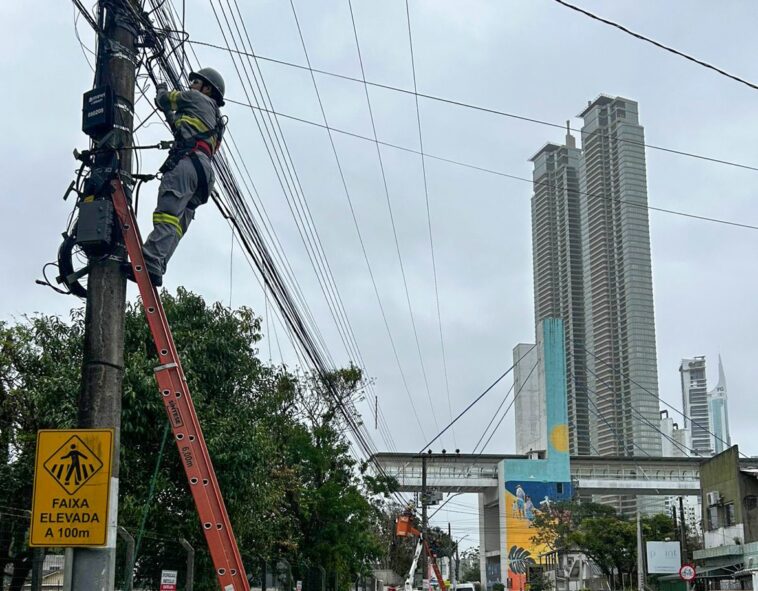 A Contribuição para o Custeio da Iluminação Pública (Cosip) de Balneário Camboriú realizou nesta quarta-feira (3) mais uma força-tarefa de limpeza e organização dos postes. A ação se concentrou entre um trecho da Avenida Hermógenes Assis Feijó e a Rua José Francisco Vitor, no Bairro da Barra, e resultou na retirada de 100 quilos de fios soltos e obsoletos da rede de iluminação pública.