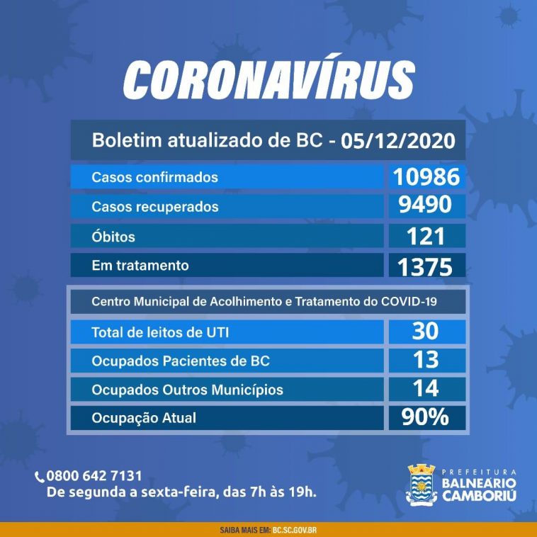 Neste sábado (06), Balneário Camboriú registrou 44 casos confirmados de coronavírus. O município chega a 10.986 casos da doença. Desses, 9.490 pessoas (86.4%) já estão recuperadas e receberam alta da Vigilância Epidemiológica Municipal.