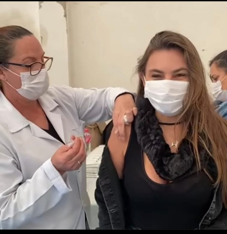 Em um post em suas redes sociais, ela não conteve a alegria e a emoção de receber a vacina.