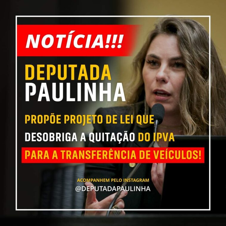 “ Mas o que muda? Na hora de vender o seu carro, não será mais necessário antecipar o pagamento do IPVA, alterando uma lei que em nosso entendimento não é justa”, explicou a parlamentar em suas redes sociais. Paulinha, de quebra, aproveita para ouvir à opinião dos seus seguidores a respeito da proposta. “ E você concorda com o nosso projeto”, questionou. A maioria dos comentários, foi propositivo ao PL.
