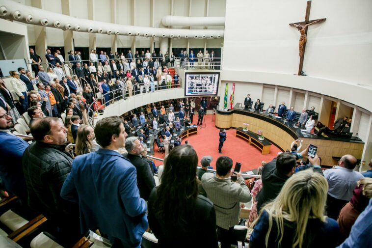 A Assembleia Legislativa de Santa Catarina realizou, na noite desta quarta-feira (24/09), uma sessão especial para celebrar os 50 anos da Secretaria Executiva de Articulação Nacional (SAN). A iniciativa de Eskudlark (PL) foi amplamente prestigiada, reunindo mais de 400 lideranças, entre representantes dos poderes Judiciário, Executivo, Legislativo, prefeitos e vereadores de todo o estado, que lotaram o plenário da Alesc.