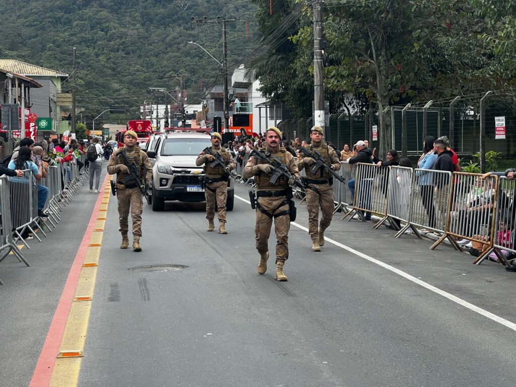 O segundo desfile cívico de 7 de setembro em Balneário Camboriú, realizado no Bairro da Barra, reuniu alunos e profissionais da educação municipal e estadual, além de forças de segurança, que marcharam pela Rua Hermógenes de Assis Feijó até a Praça do Pescador.