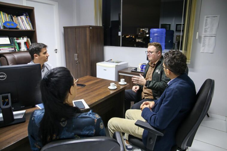 O presidente da Escola do Legislativo de Balneário Camboriú Félix Eugênio Reichert, vereador André Meirinho (Progressistas), e a diretora, Kelli Cristina Dacol, receberam, nesta quarta-feira (22/05), representantes do Centro de Educação Superior da Foz do Itajaí da Universidade do Estado de Santa Catarina (Cesfi-UDESC), cujo campus fica no bairro Nova Esperança, em Balneário Camboriú.