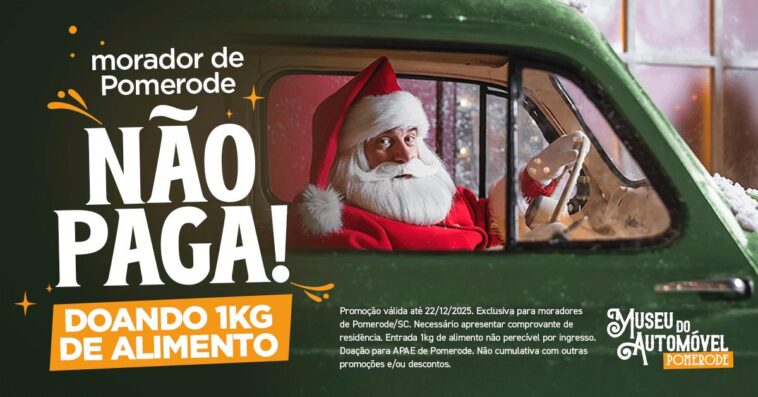O espírito natalino tomou conta do Museu do Automóvel de Pomerode! Com ações especiais voltadas à moradores e turistas, o MAP reforça a magia desta época do ano unindo solidariedade e diversão em família, com atrações exclusivas que prometem encantar apaixonados pela cultura automotiva.