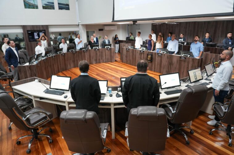 A Câmara de Balneário Camboriú realizou, nesta terça-feira (03/02), a primeira sessão ordinária do ano, antecedida por uma sessão solene de instalação das sessões legislativas ordinárias de 2026.