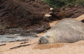 equipes comunicaram a Universidade do Vale do Itajaí (Univali), que, por meio do Projeto de Monitoramento de Praias da Bacia de Santos (PMP-BS), avalia as condições de animais silvestres em praias. É comum que o elefante marinho pare para descansar em locais de areia para repor as energias entre sete a dez dias. Por isso, o local em que o animal está de repouso foi isolado para manter a população distante do animal, garantindo a segurança de todos.
