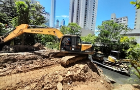 Em dois meses, a obra de dragagem do Rio Marambaia já retirou cerca de 4 mil metros cúbicos de lodo do fundo, contabilizados até a última sexta-feira (28).