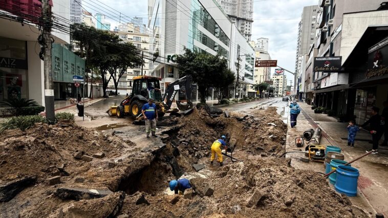 As equipes da Empresa Municipal de Água e Saneamento de Balneário Camboriú (Emasa) e Secretaria de Obras estão atuando ativamente no reparo e conserto de uma adutora que rompeu na madrugada deste domingo (29), na Avenida Brasil, esquina com a Rua 3680.