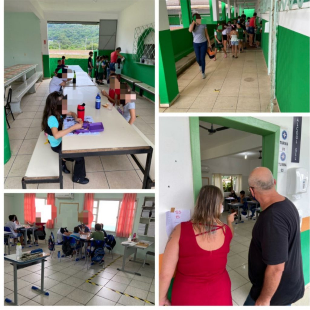 “É nítida dedicação de professores, serventes, merendeiras e de toda a direção. Mas falta estrutura para manter as aulas presenciais”, afirmou Luciana Sobota, presidente do Sisemcam-Sindicato dos Servidores Municipais de Camboriú, após visitar unidades da rede municipal de ensino nesta segunda-feira (1) e verificar as regras de prevenção da Covid 19.