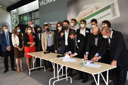 ”Hoje é um dia histórico para Santa Catarina e para o Brasil, porque os prefeitos e prefeitas catarinenses e a FECAM passaram ao papel de protagonistas de um movimento que agora é nacional em favor de uma vacina que será produzida pelo Butantan, uma instituição de 120 anos, referência em ciência no Brasil e no mundo”, afirmou o catarinense Vinícius Lummertz, atual secretário de Turismo do estado de São Paulo e que intermediou as negociações entre a FECAM e o Butantan. Prefeitos e entidades de outros Estados, como o Paraná e o Rio Grande do Sul, também participaram do evento realizado ao ar livre no Instituto Butantan nesta quinta-feira (10) à tarde.