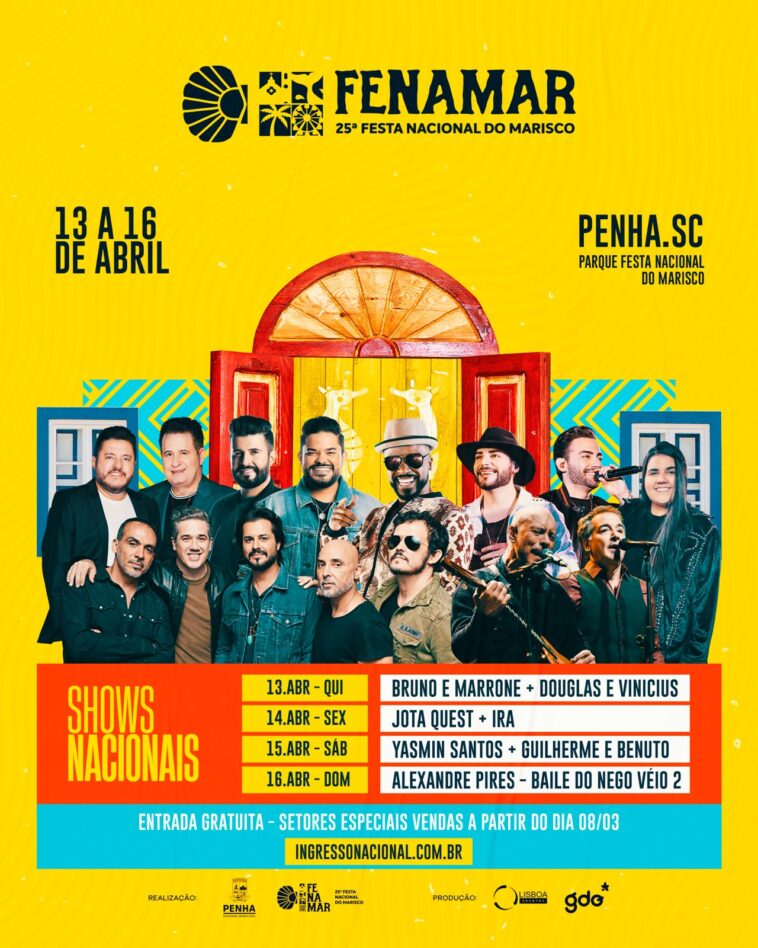 Gastronomia a base de frutos do mar e marisco, atrações infantis, cultura açoriana, artesanatos e grandes shows nacionais. Esses são os elementos principais e que já estão confirmados para a realização da 25ª Festa Nacional do Marisco (Fenamar), que acontecerá de 13 a 16 de abril, no município de Penha. A programação foi oficialmente lançada em evento nesta terça-feira (01/03), com a presença de autoridades do executivo e legislativo, representantes de associações e entidades turísticas, além da imprensa.