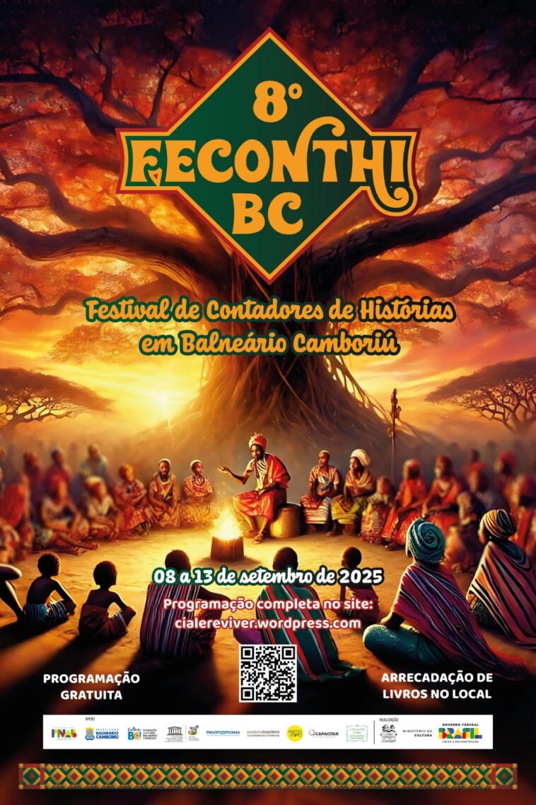 Realizado pela Cia Ler e Viver, o 8º Feconthi foi contemplado com recursos financeiros da Política Nacional Aldir Blanc de Fomento à Cultura (PNAB), do Ministério da Cultura, após ser selecionado por edital da Fundação Cultural de Balneário Camboriú.