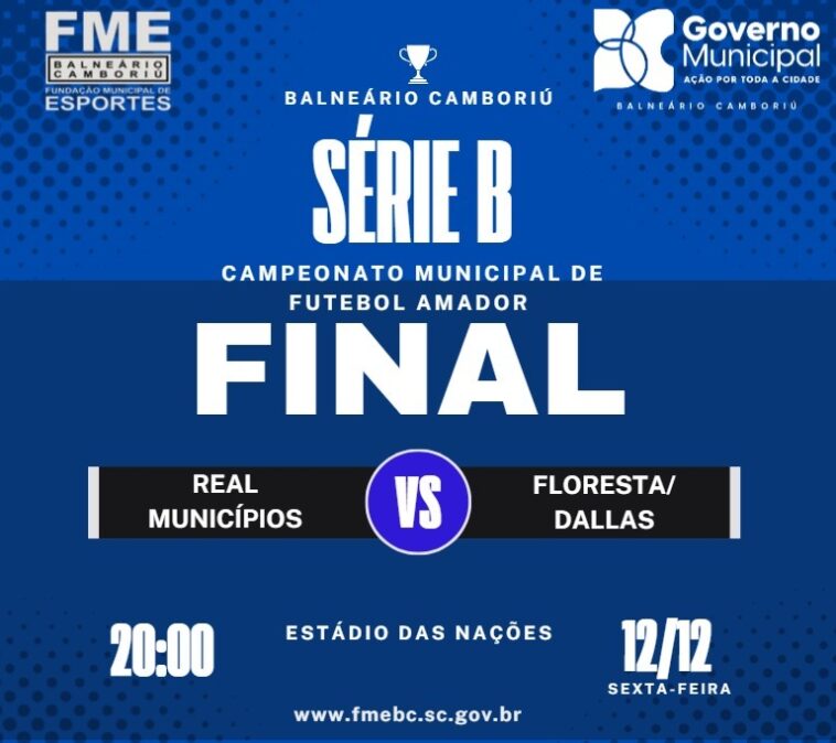 A decisão do Campeonato de Futebol Amador Série B – Categoria Livre, promovido pela Fundação Municipal de Esportes (FME), ocorrerá nesta sexta-feira (12), às 20h, no Campo Nações (Rua Libéria, n° 780). A disputa pelo título está entre as equipes Real Municípios e Floresta/Dallas.